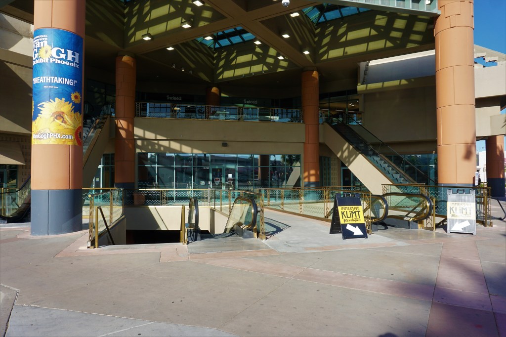 Yes, it was underground. Yes, there are any number of entrances, secret or not all over downtown. But what we found was a winding array of differently colored neon lit walkways, some with photographs of times gone past (too much florescent lighting and reflection off of the glass for photography), but no shops, stores, restaurants or post office. Nice little walk with thoughts of what once was or maybe never was?